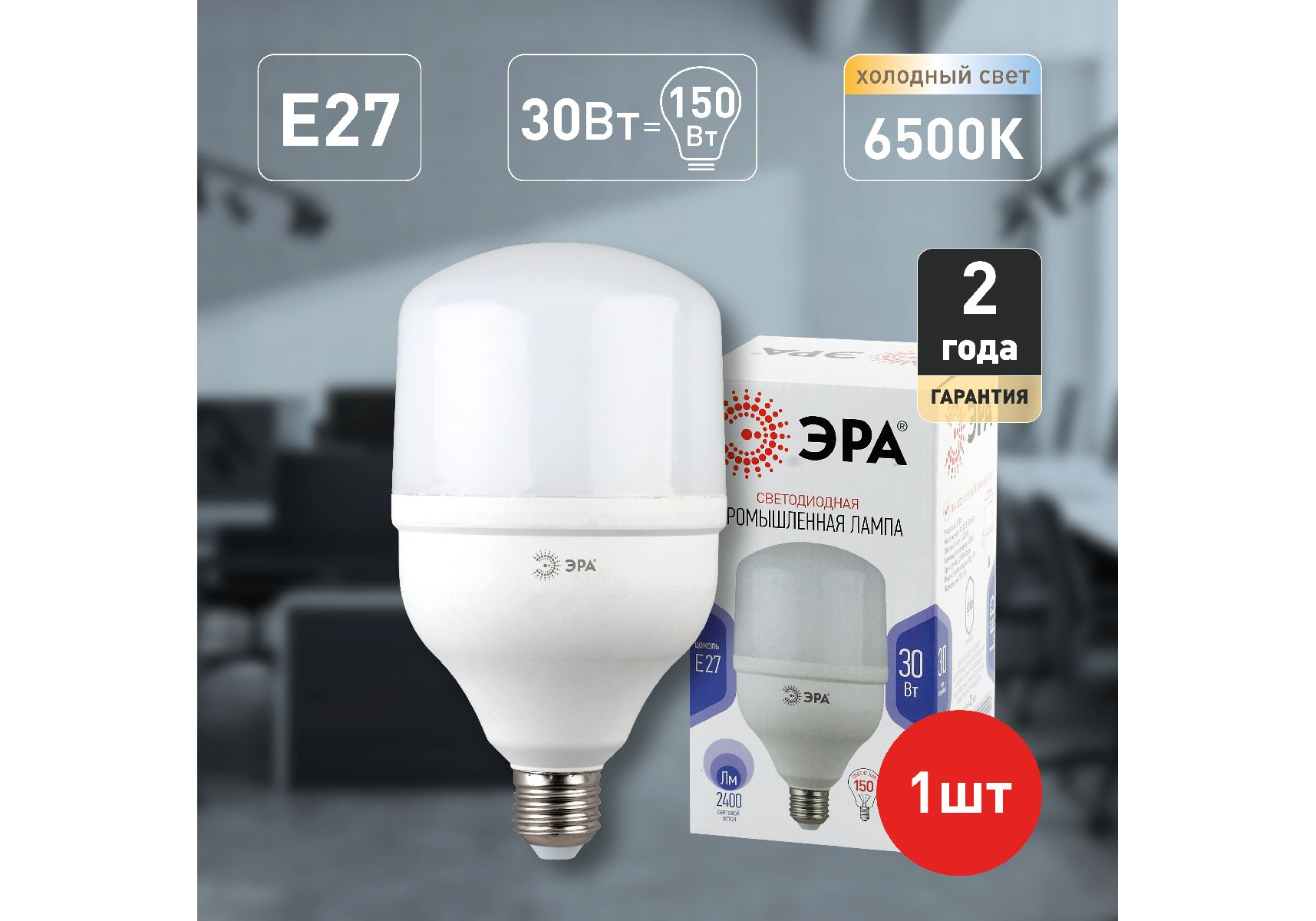Лампа светодиодная Эра E27 30W 6500K LED POWER T100-30W-6500-E27 Б0027004