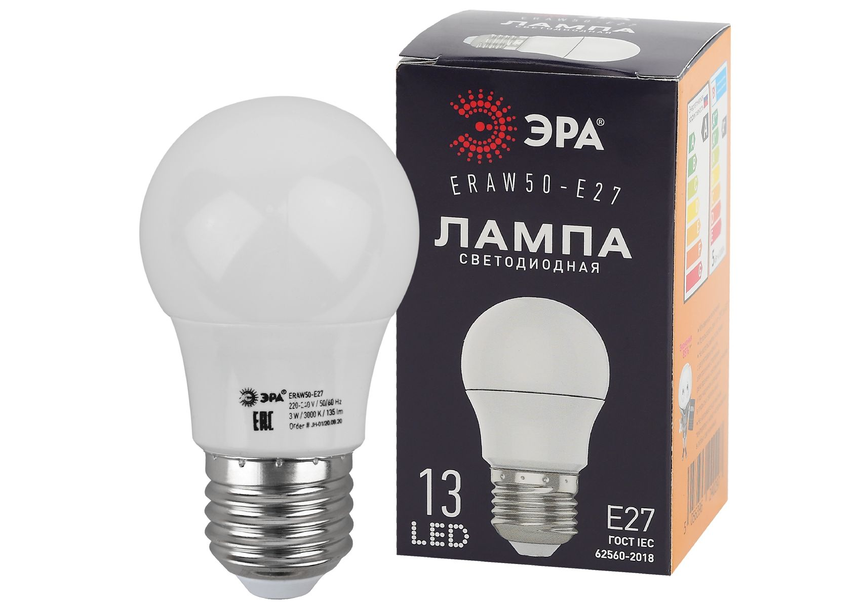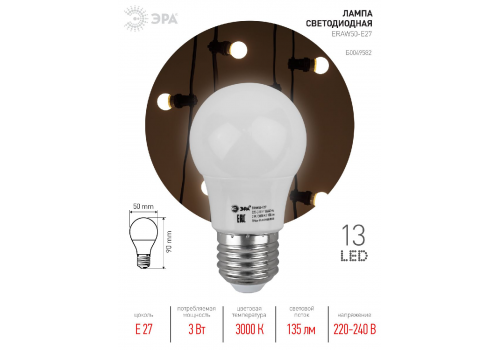 Лампа светодиодная Эра E27 3W 3000K ERAW50-E27 Б0049582