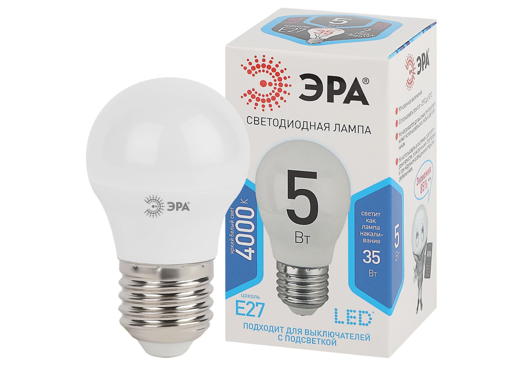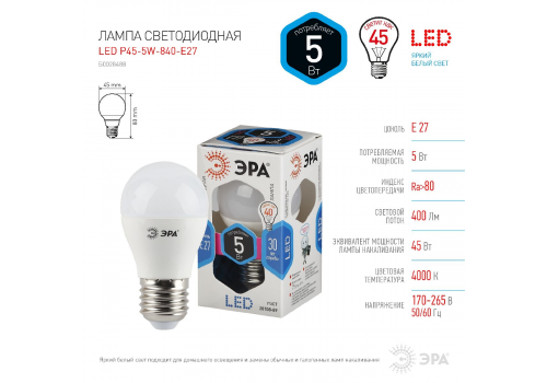 Лампа светодиодная Эра E27 5W 4000K LED P45-5W-840-E27 Б0028488