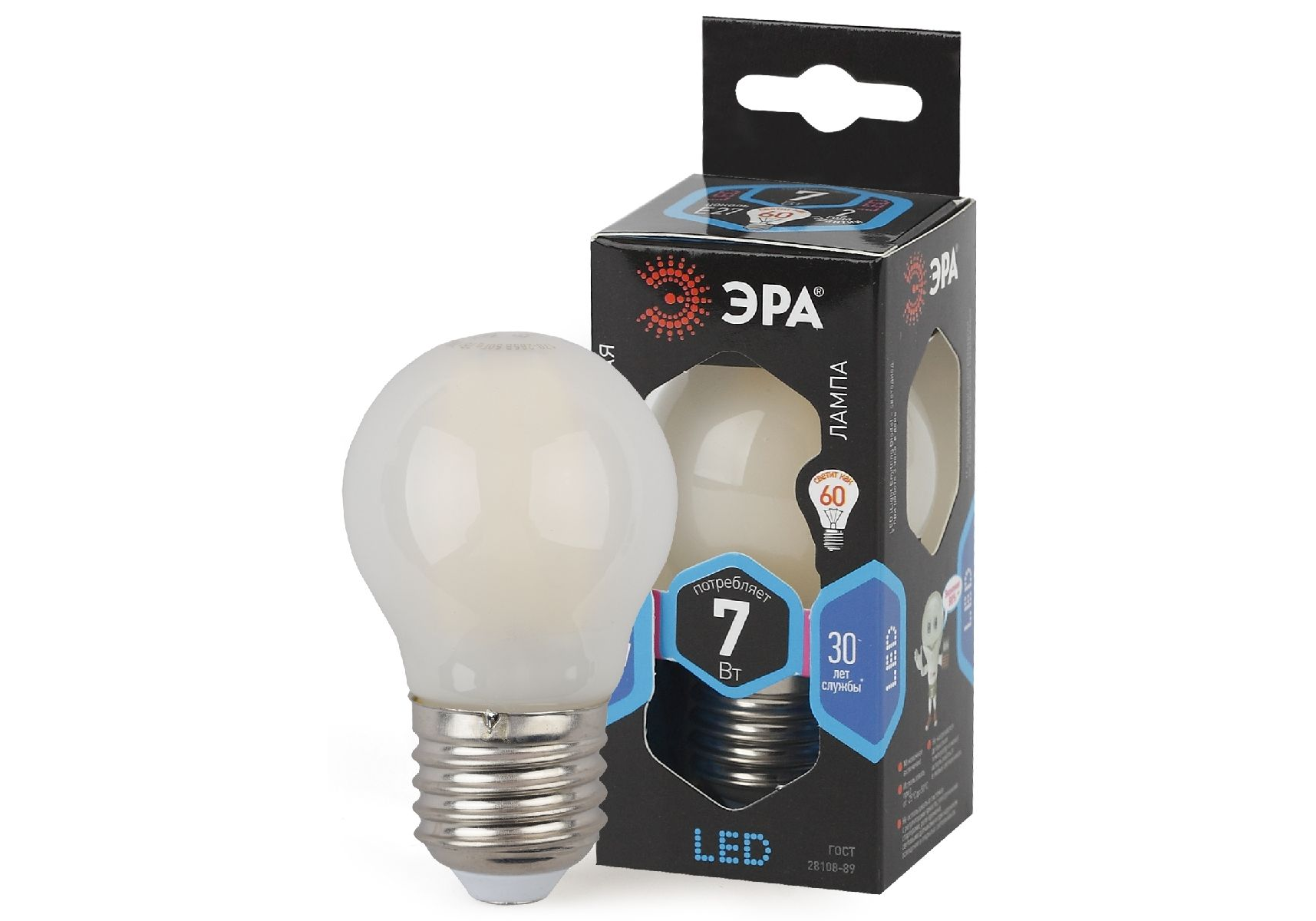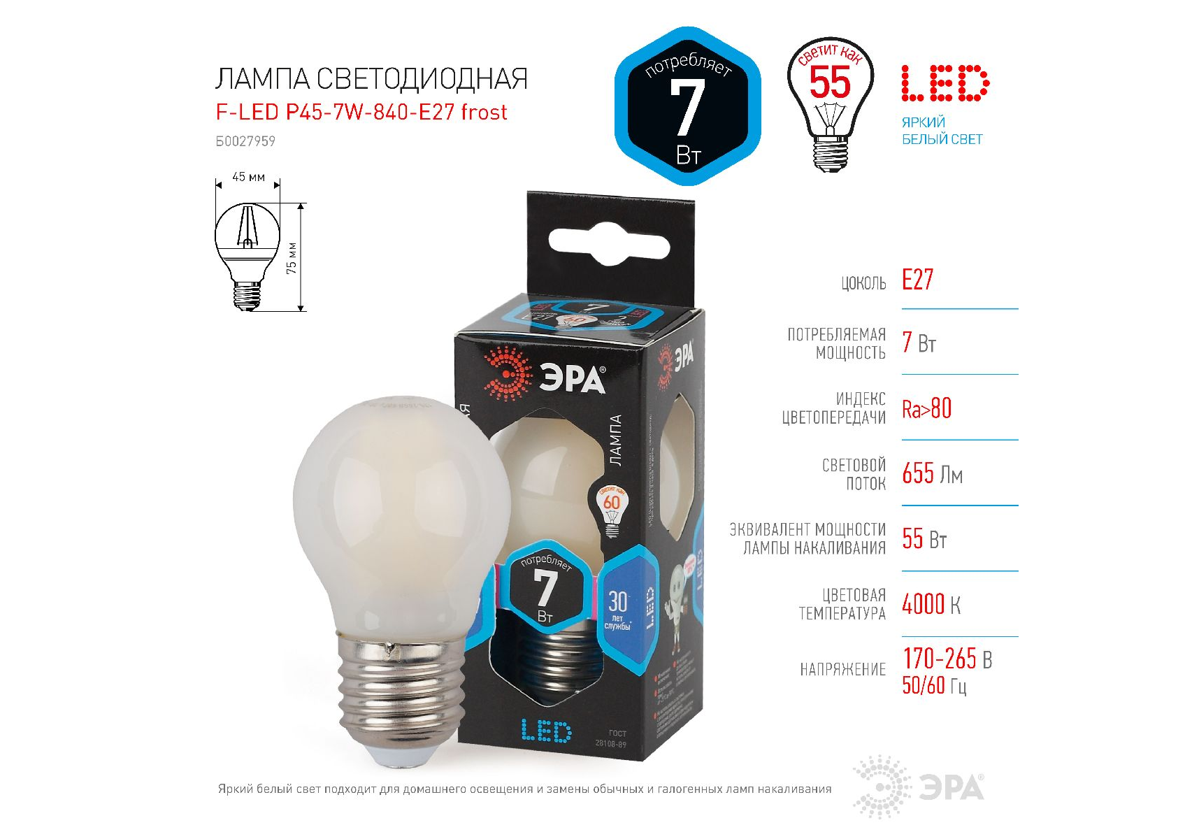 Лампа светодиодная Эра E27 7W 4000K F-LED P45-7W-840-E27 frost Б0027959