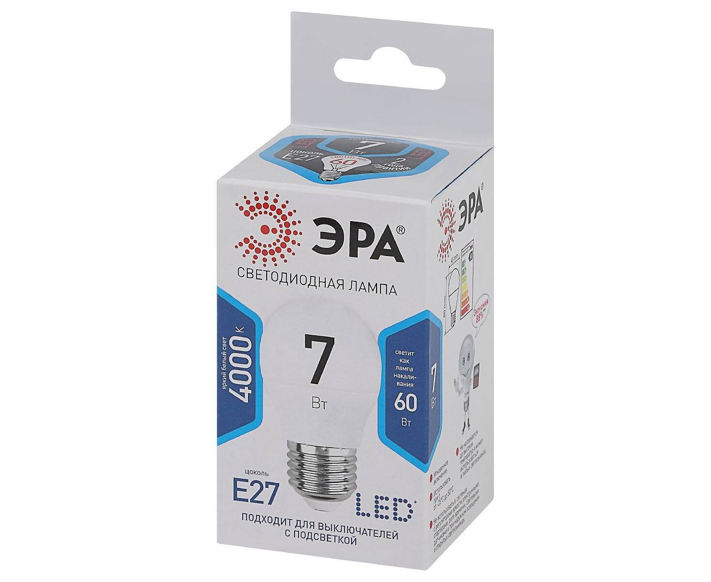Лампа светодиодная Эра E27 7W 4000K LED P45-7W-840-E27 Б0020554