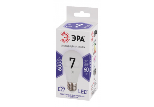 Лампа светодиодная Эра E27 7W 6000K LED A60-7W-860-E27 Б0044087