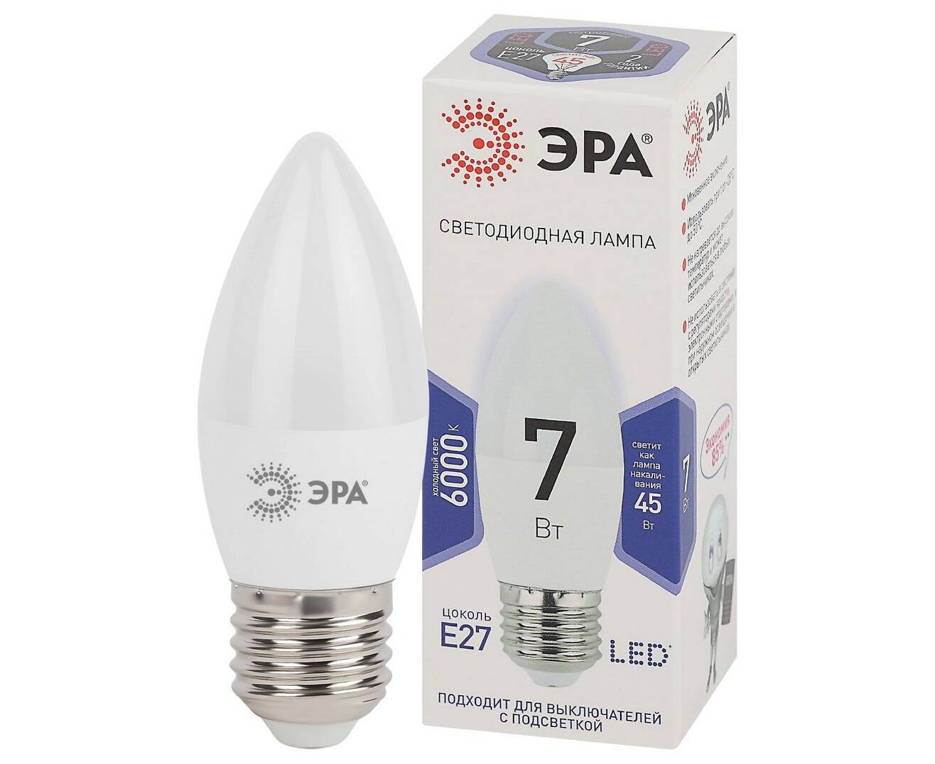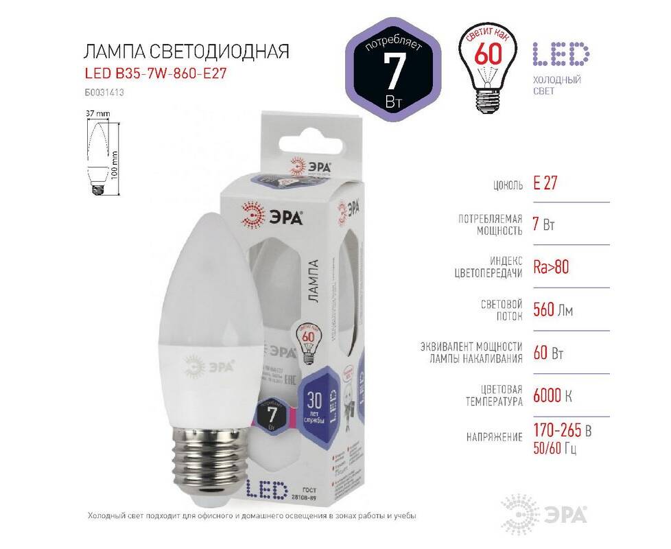 Лампа светодиодная Эра E27 7W 6000K LED B35-7W-860-E27 Б0031413