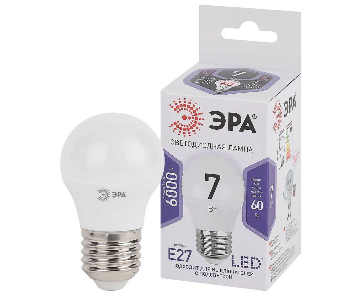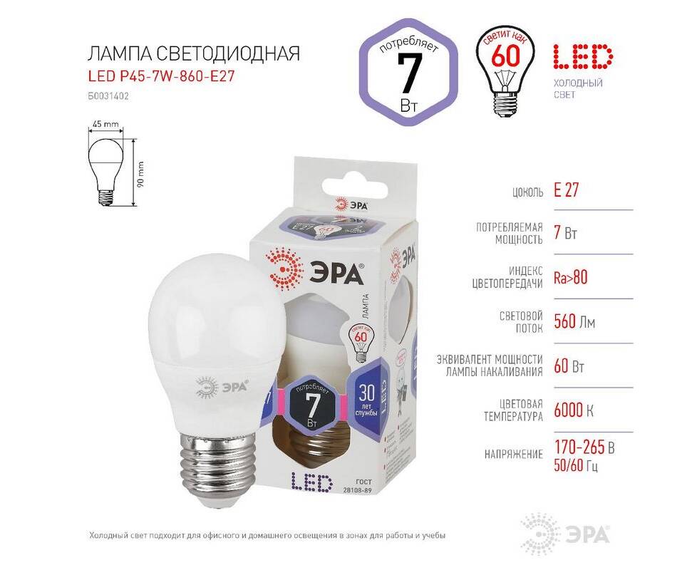 Лампа светодиодная Эра E27 7W 6000K LED P45-7W-860-E27 Б0031402