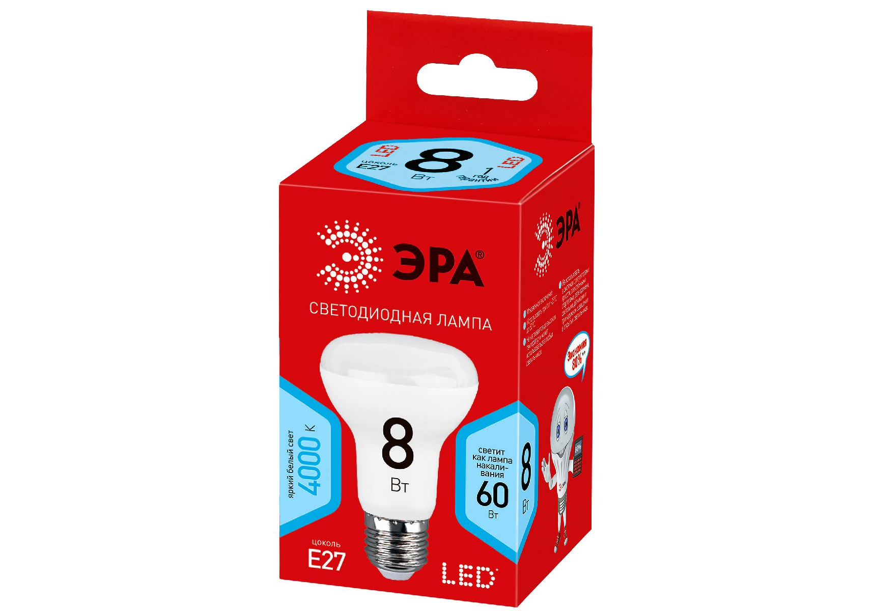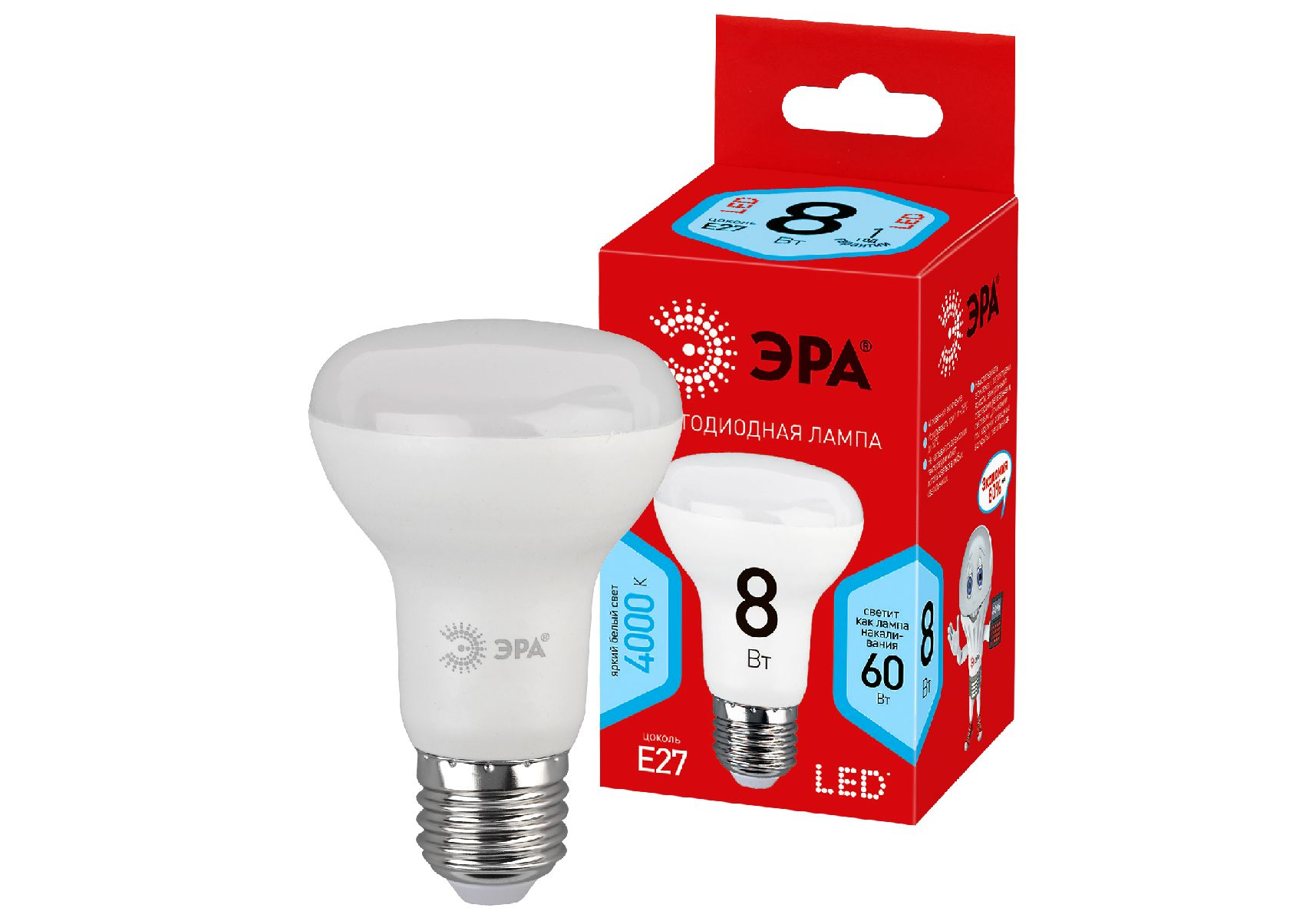 Лампа светодиодная Эра E27 8W 4000K ECO LED R63-8W-840-E27 Б0020636