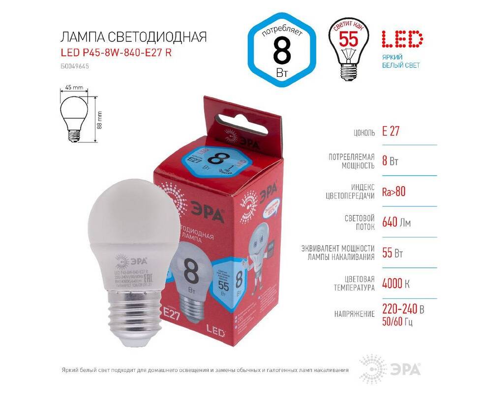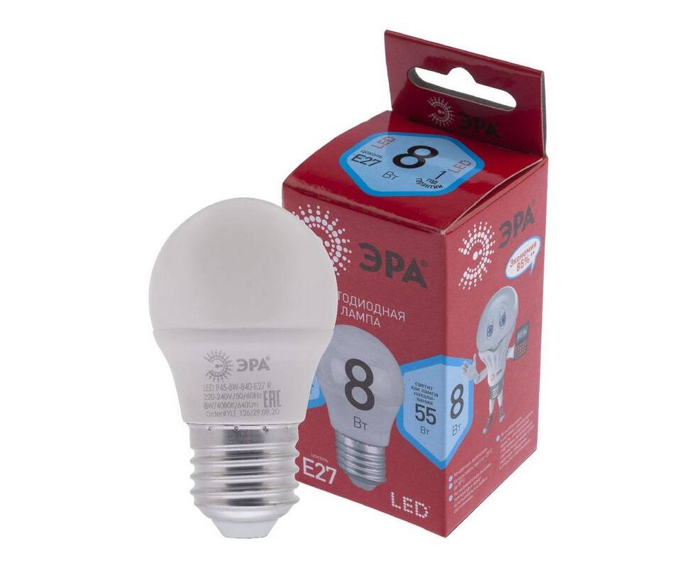 Лампа светодиодная Эра E27 8W 4000K LED P45-8W-840-E27 R Б0049645