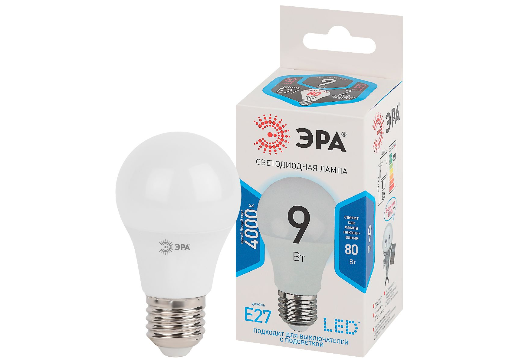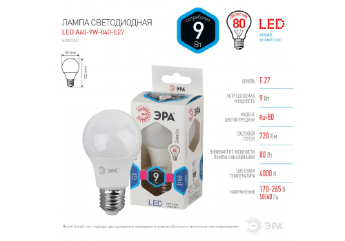 Лампа светодиодная Эра E27 9W 4000K LED A60-9W-840-E27 Б0032247
