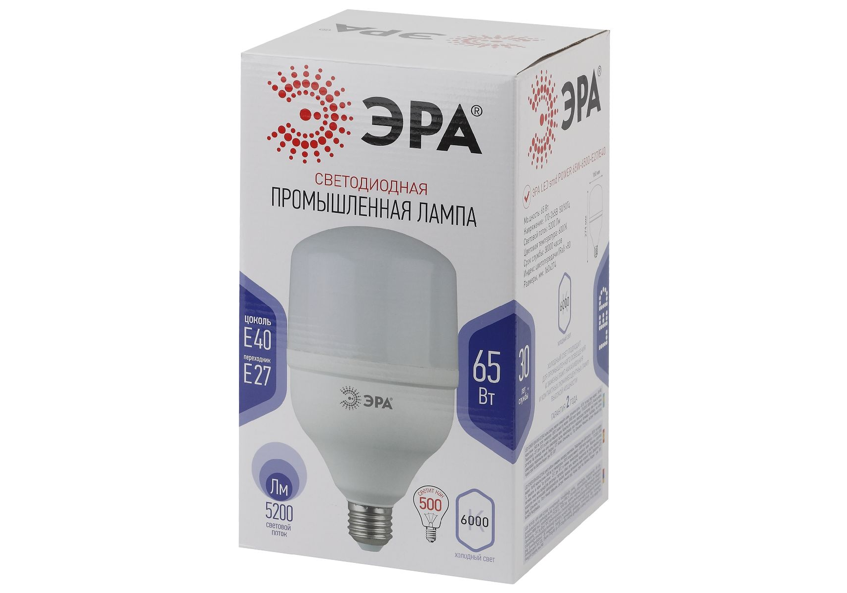 Лампа светодиодная Эра E40 65W 6500K LED POWER T160-65W-6500-E27/E40 Б0027924