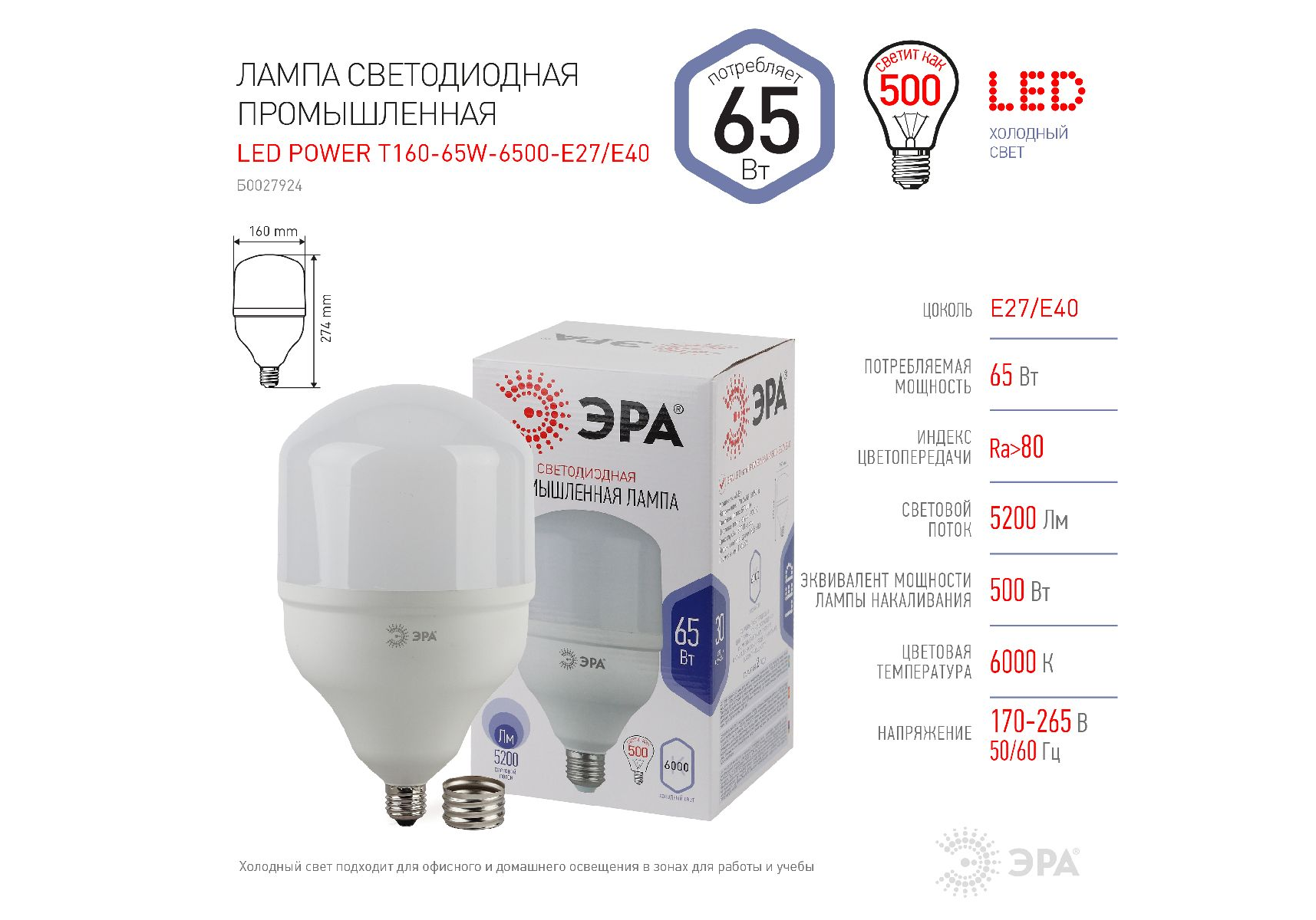 LED POWER T160-65W-6500-E27/E40