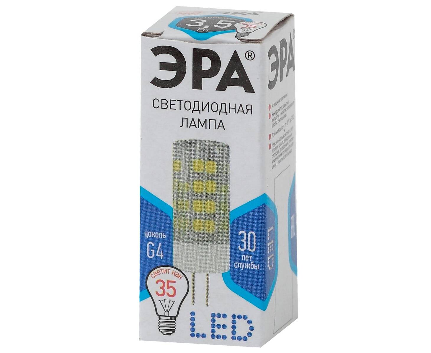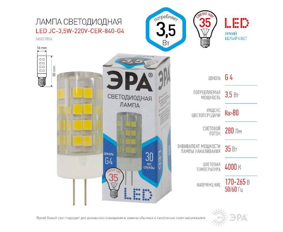 Лампа светодиодная Эра G4 3,5W 4000K LED JC-3,5W-220V-CER-840-G4 Б0027856