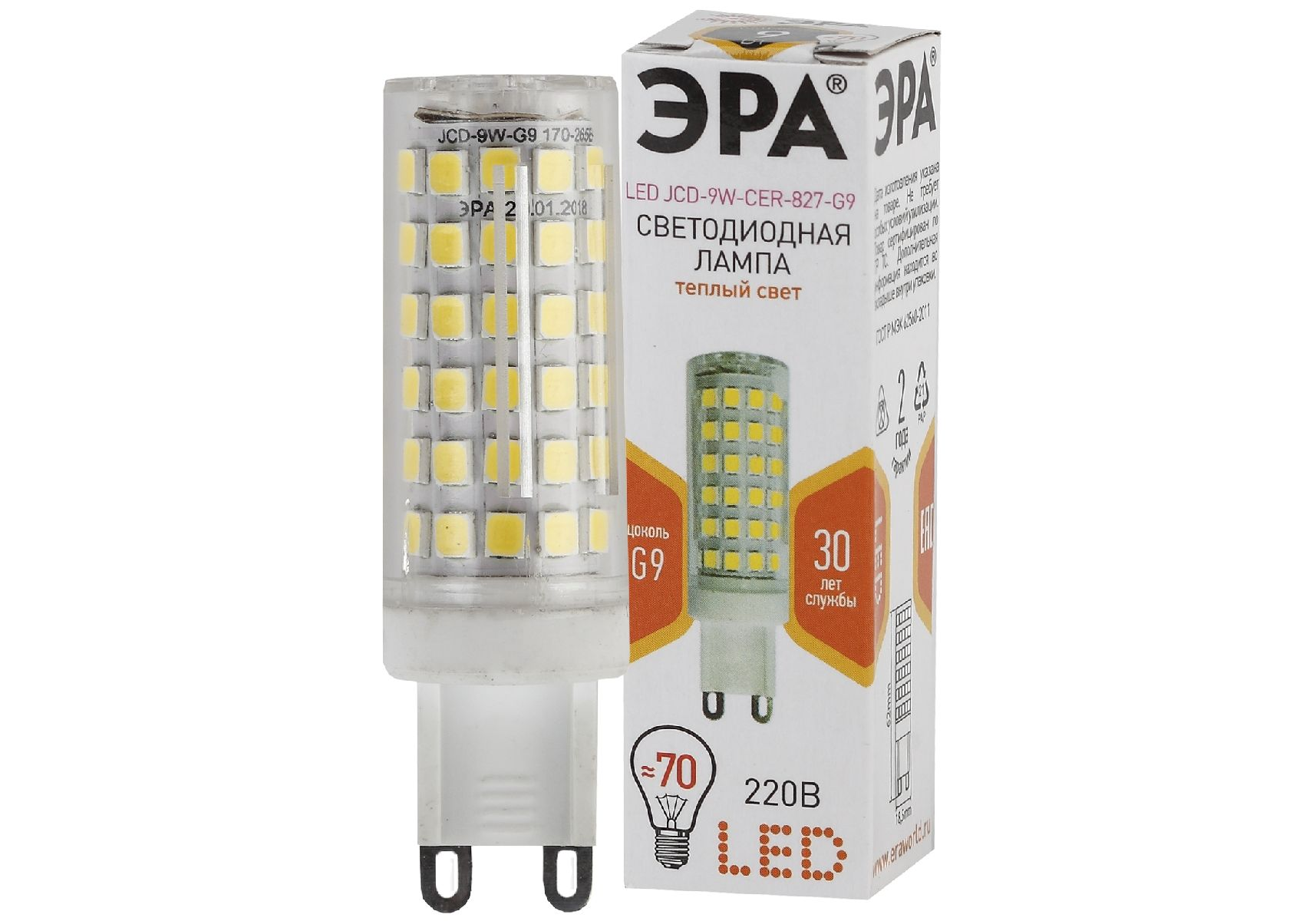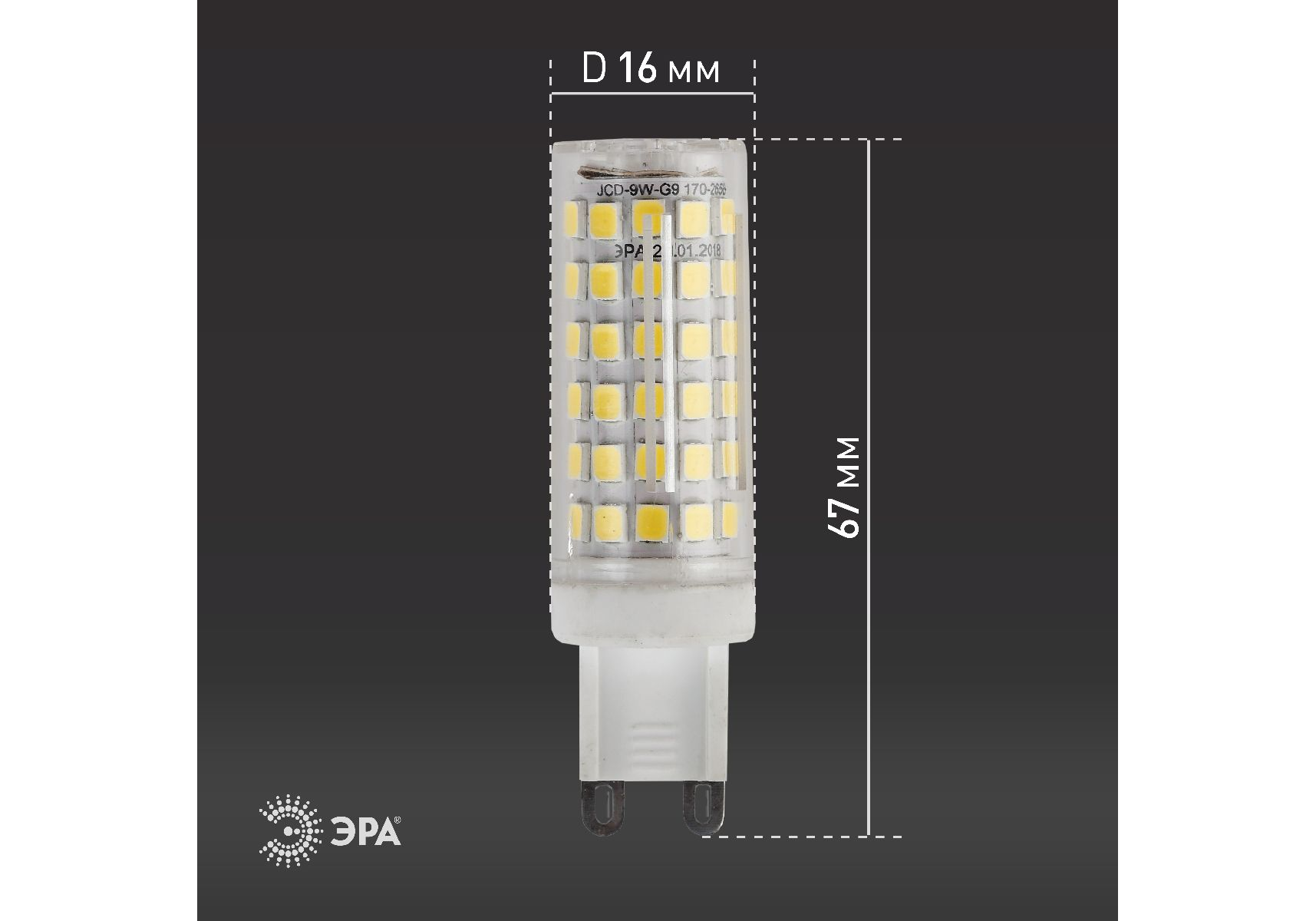 Лампа светодиодная Эра G9 9W 2700K LED JCD-9W-CER-827-G9 Б0033185