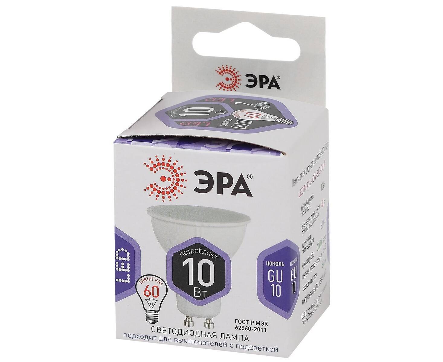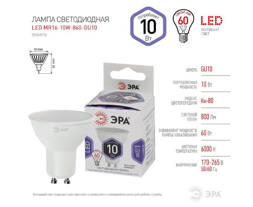 Лампа светодиодная Эра GU10 10W 6000K LED MR16-10W-860-GU10 Б0049074