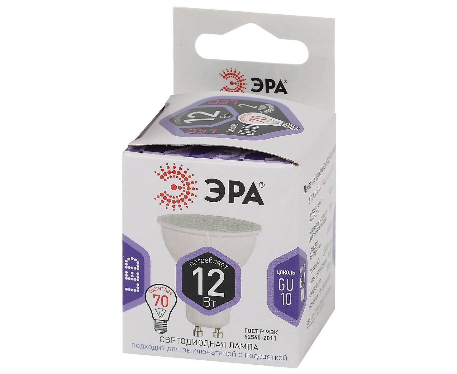Лампа светодиодная Эра GU10 12W 6000K LED MR16-12W-860-GU10 Б0049076