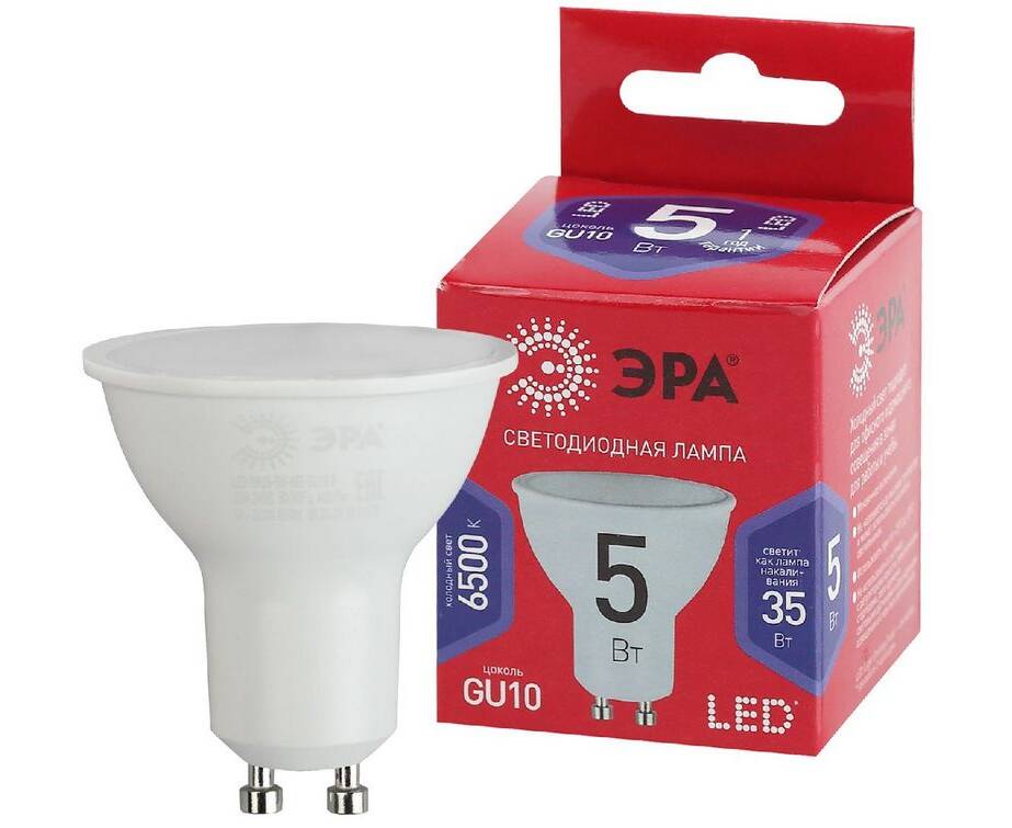 Лампа светодиодная Эра GU10 5W 6500K LED MR16-5W-865-GU10 R Б0045348
