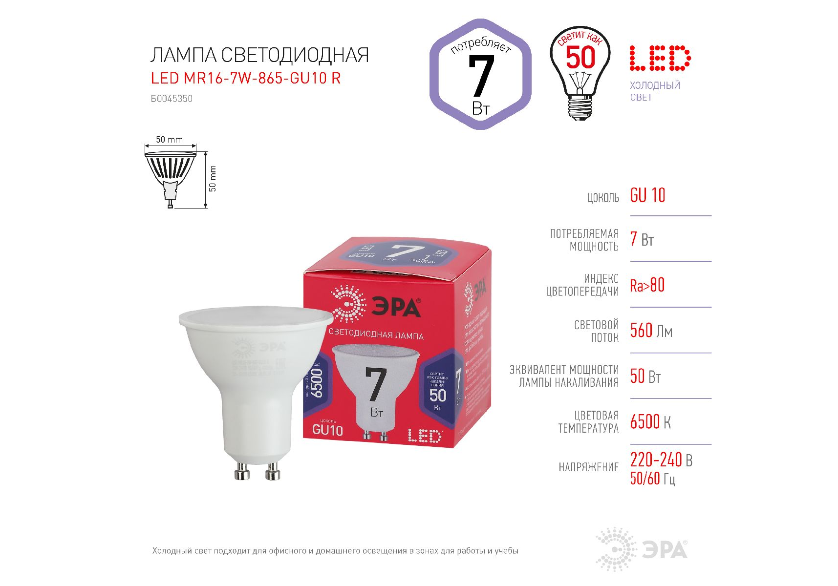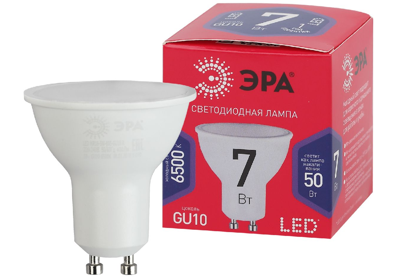 Лампа светодиодная Эра GU10 7W 6500K LED MR16-7W-865-GU10 R Б0045350