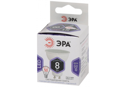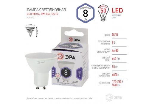Лампа светодиодная Эра GU10 8W 6000K LED MR16-8W-860-GU10 Б0049072