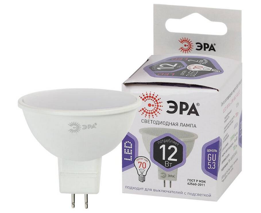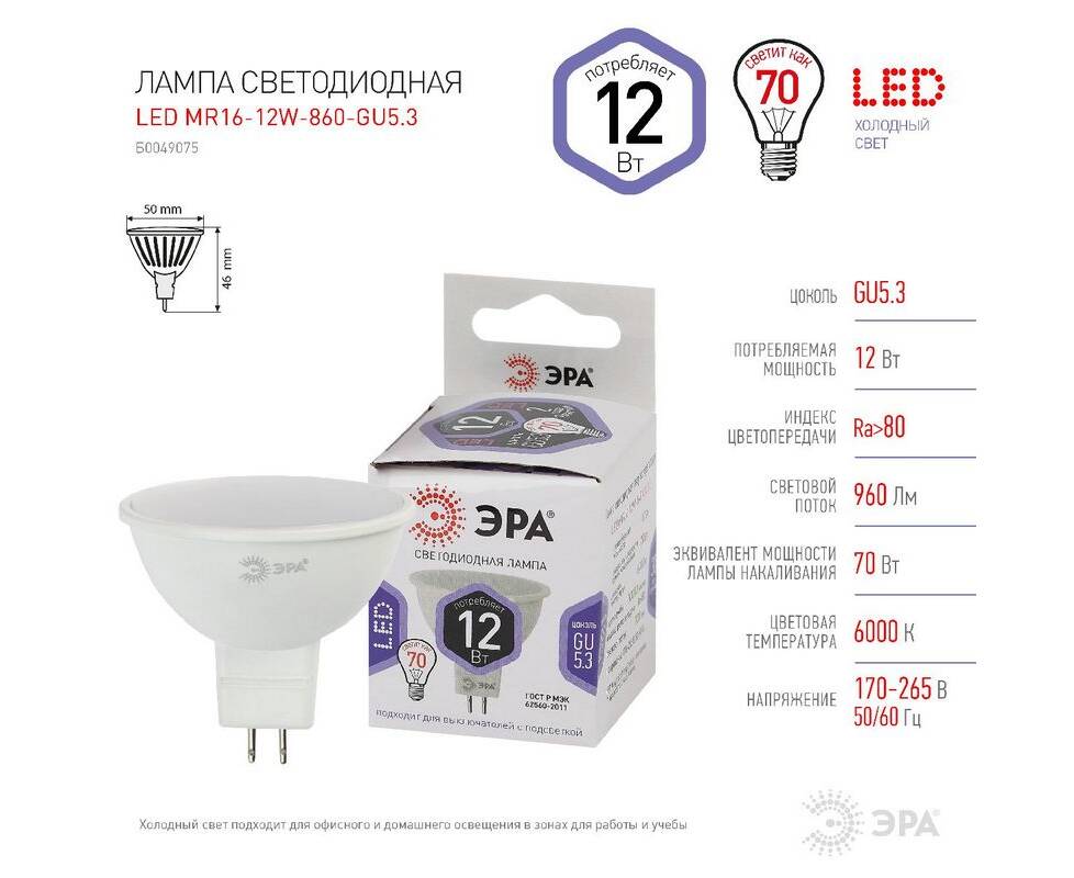 Лампа светодиодная Эра GU5.3 12W 6000K LED MR16-12W-860-GU5.3 Б0049075