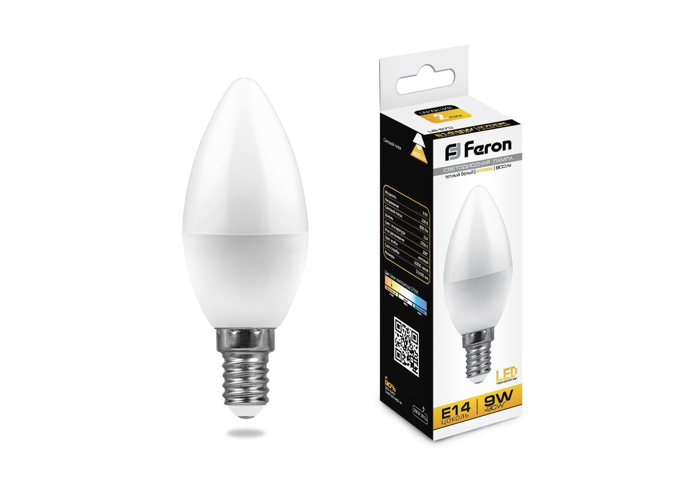 Лампа светодиодная Feron E14 9W 2700K Свеча Матовая LB-570 25798