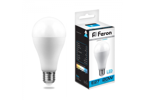 Лампа светодиодная Feron E27 20W 6400K Шар Матовая LB-98 25789