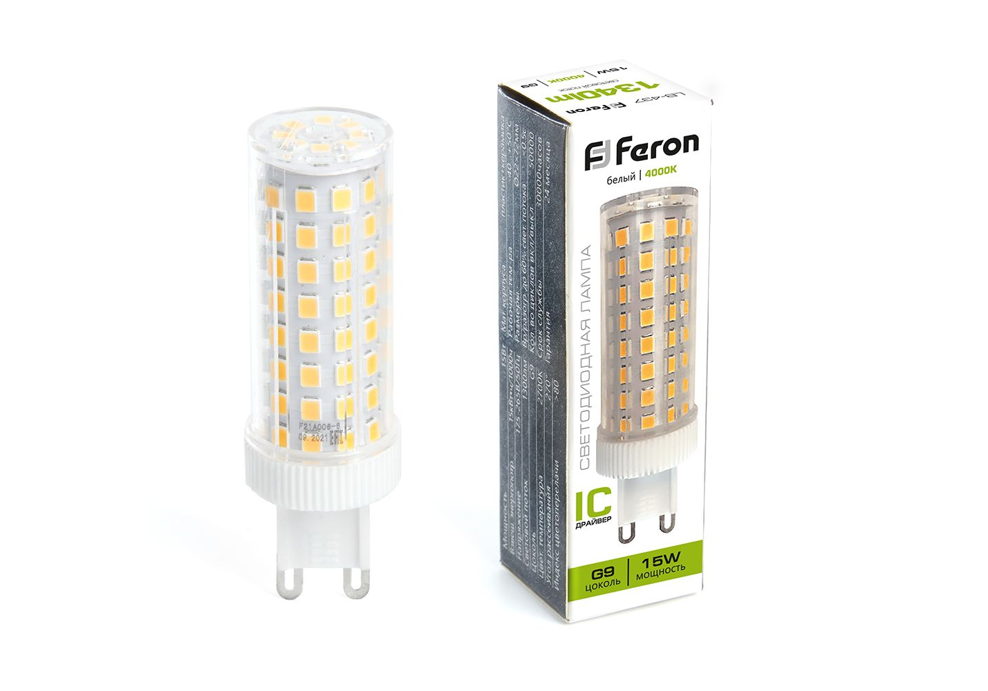 Лампа светодиодная Feron G9 15W 4000K прозрачная LB-437 38213