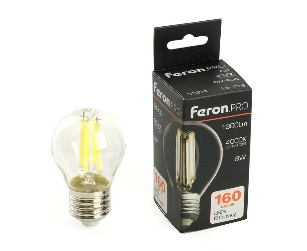 Лампа светодиодная Feron LB-1708 E27 8W 4000K 51254