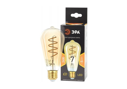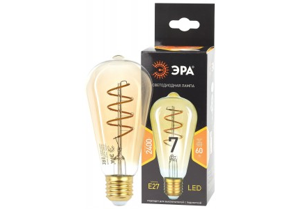 Лампа светодиодная филаментная ЭРА F-LED ST64 E27 7W(580Lm) 2400K 2K (спираль) золото 145х60