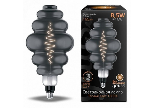 Лампа светодиодная филаментная Gauss E27 8,5W 1800K серая 161802005