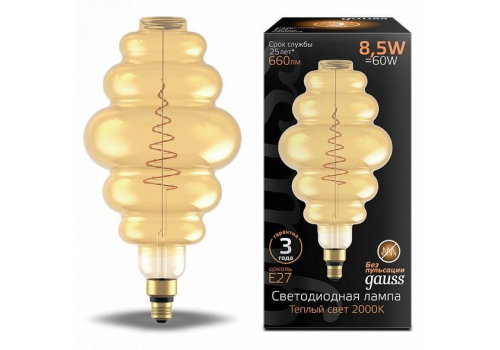 Лампа светодиодная филаментная Gauss E27 8,5W 2000K янтарная 161802105