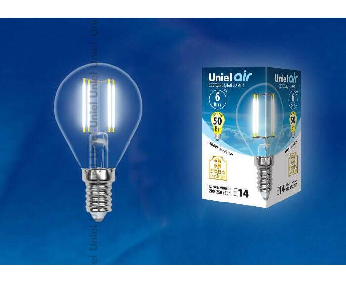 Лампа светодиодная филаментная (UL-00002207) Uniel E14 6W 4000K прозрачная LED-G45-6W/NW/E14/CL GLA0