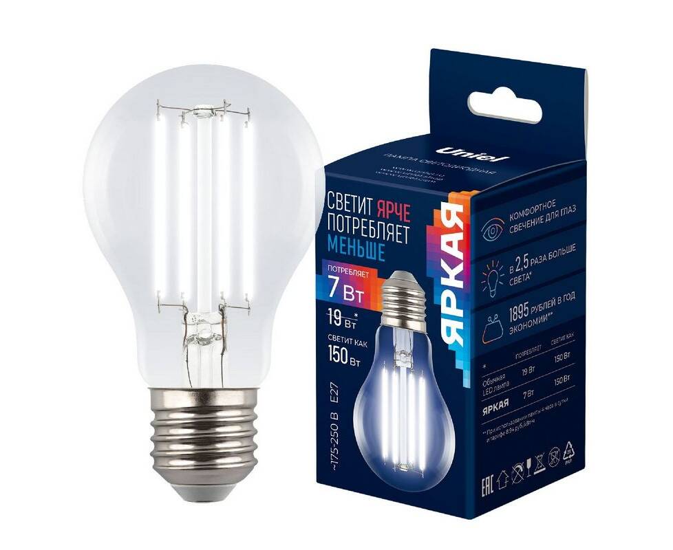 Лампа светодиодная филаментная Uniel LED-A60-7W/4000K/E27/CL GLY01TR UL-00011935