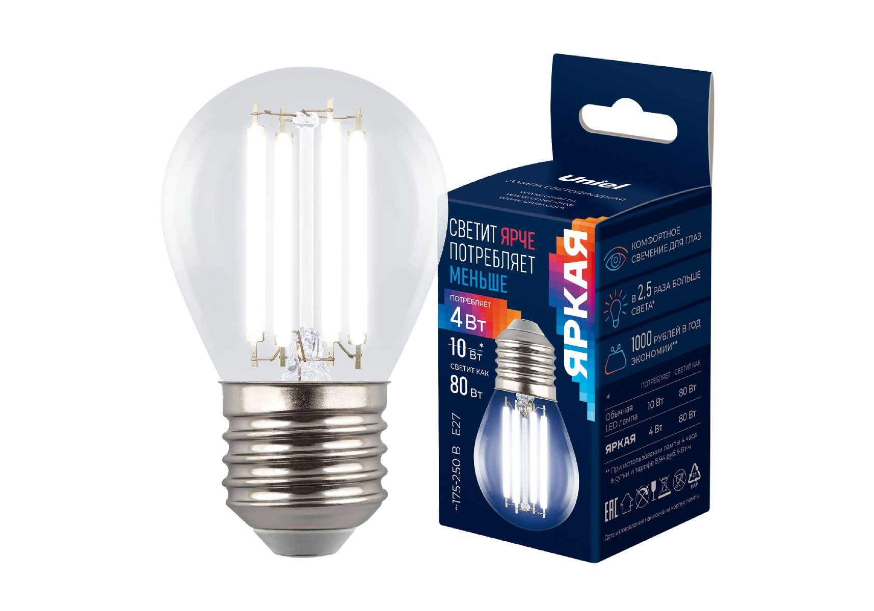 Лампа светодиодная филаментная Uniel LED-G45-4W/4000K/E27/CL GLY01TR UL-00011941