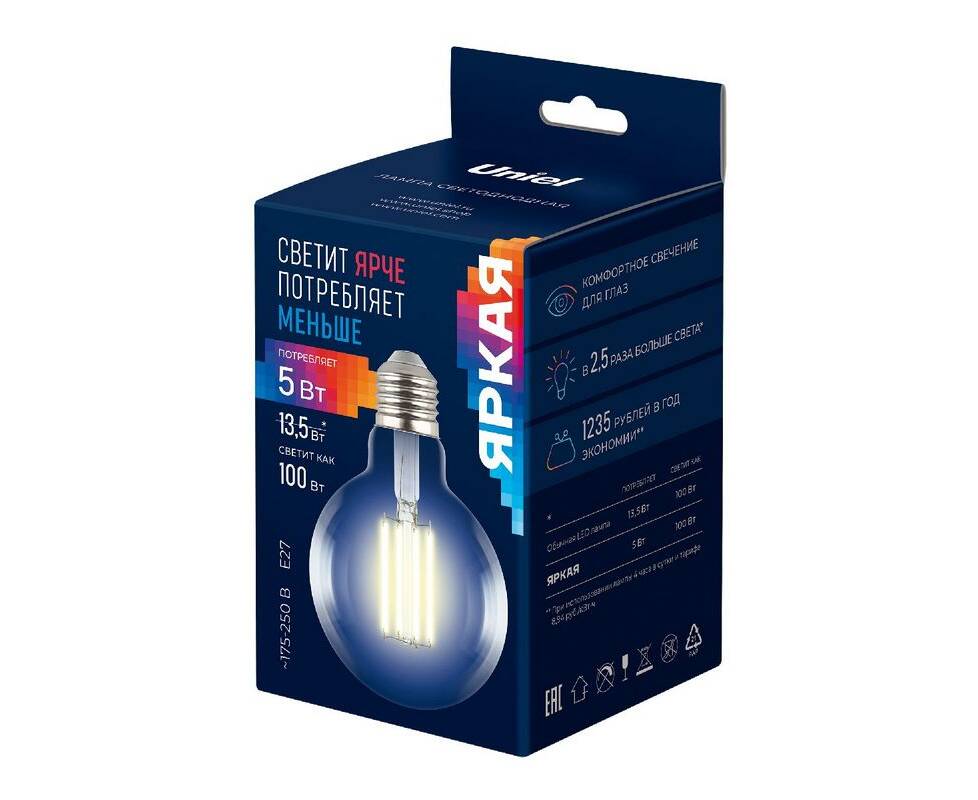 Лампа светодиодная филаментная Uniel LED-G95-5W/3000K/E27/CL GLY01TR UL-00011942