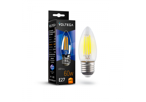 Лампа светодиодная филаментная Voltega E27 6W 2800K прозрачная VG10-C1E27warm6W-F 7046