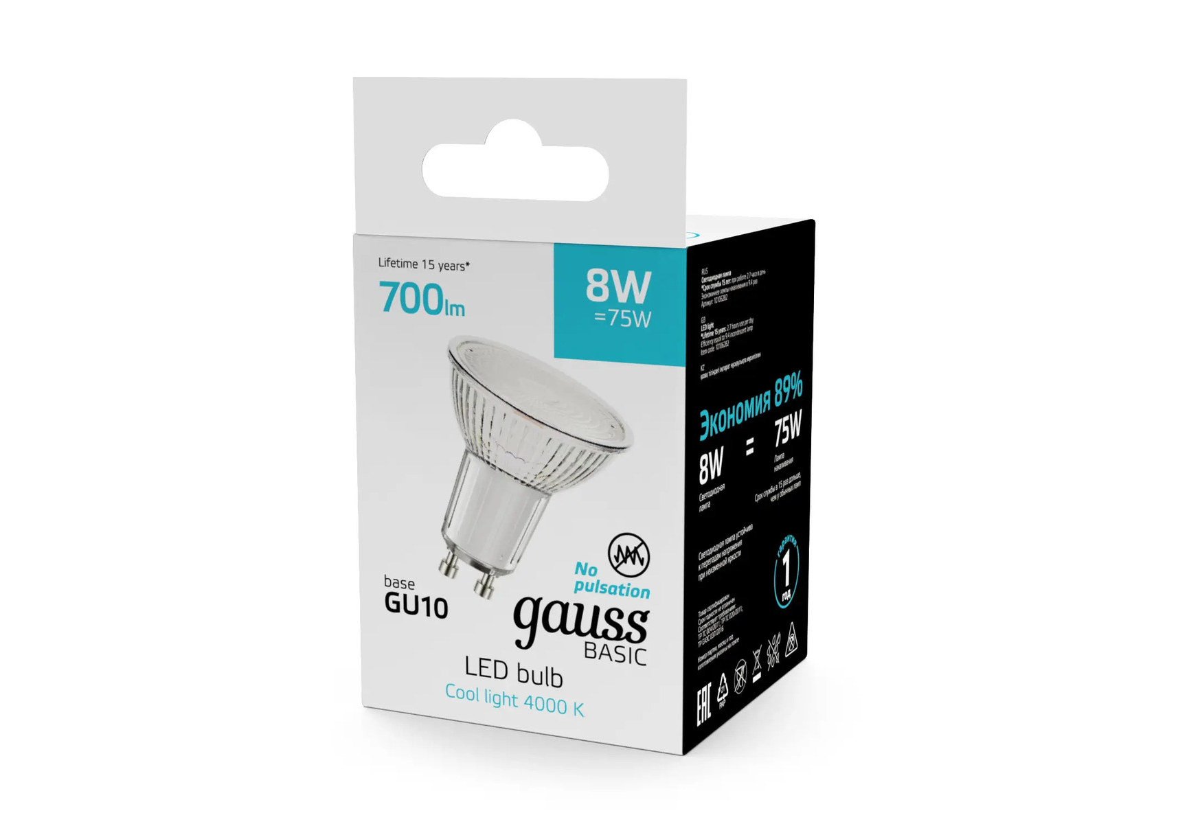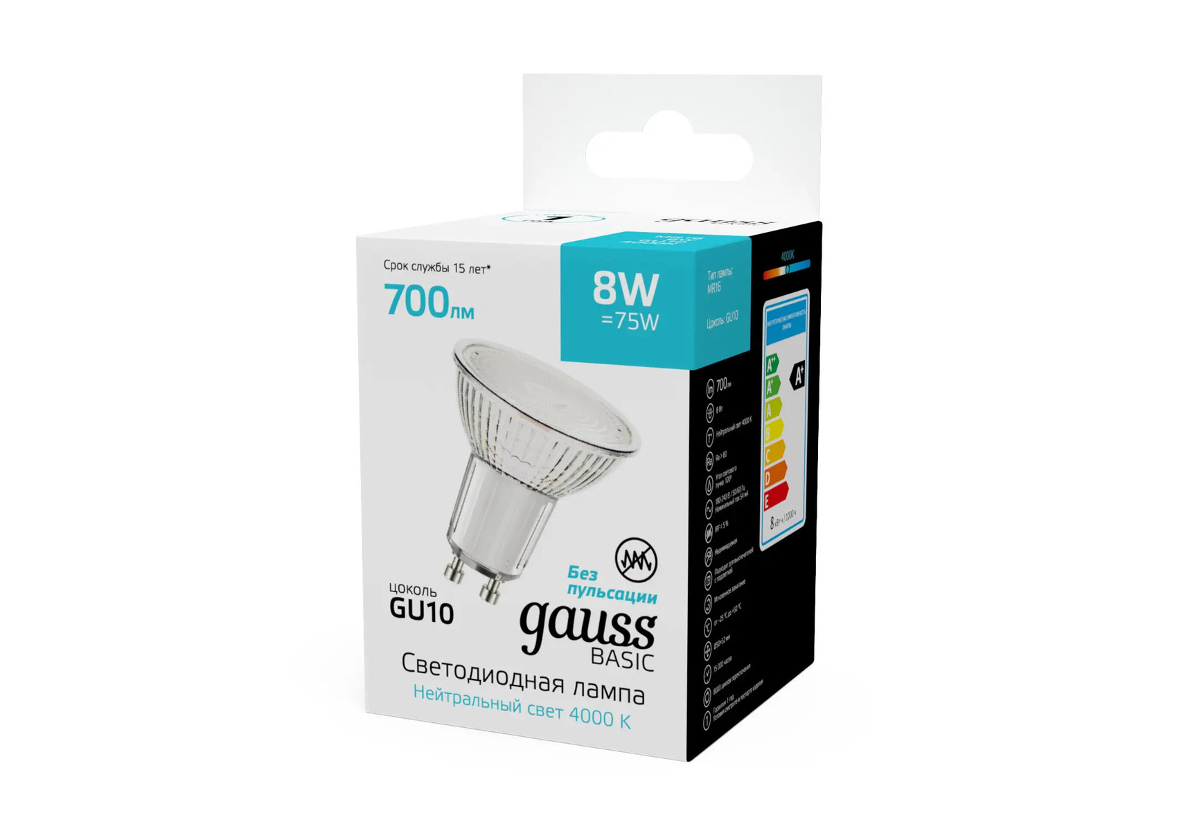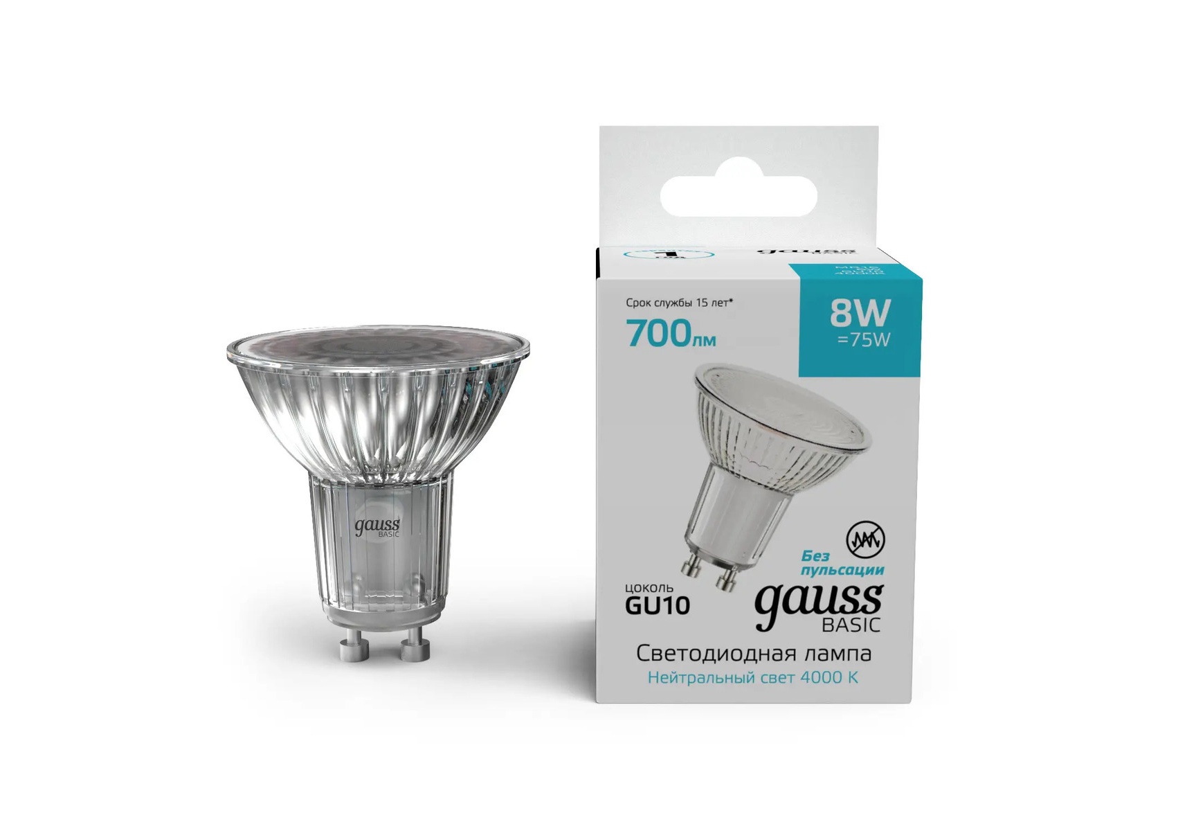 Лампа светодиодная Gauss Basic GU10 8W 4000K матовая 10106282