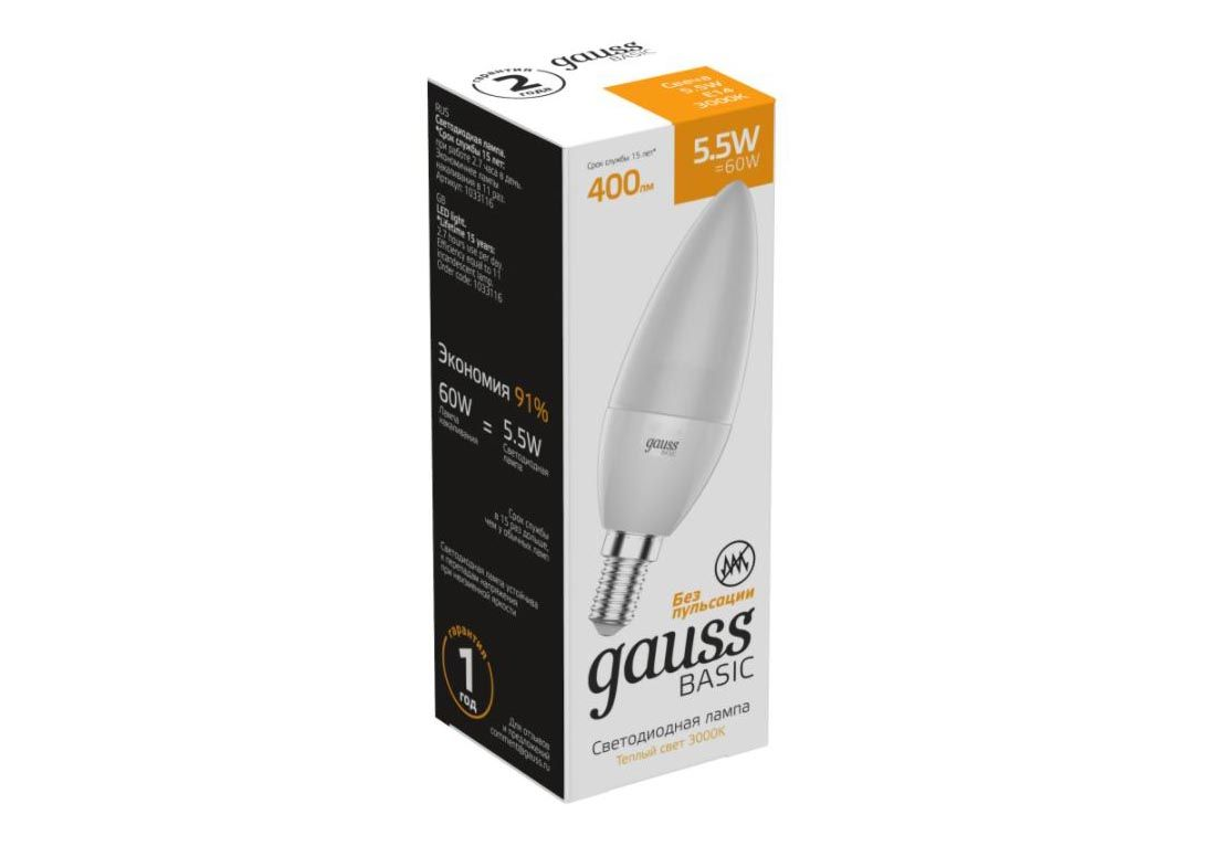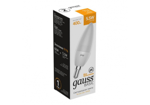 Лампа светодиодная Gauss E14 5,5W 3000К матовая 1033116