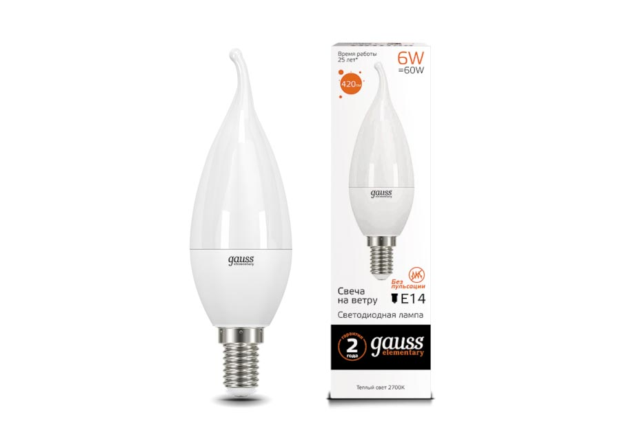 Лампа светодиодная Gauss E14 6W 2700K матовая 34116