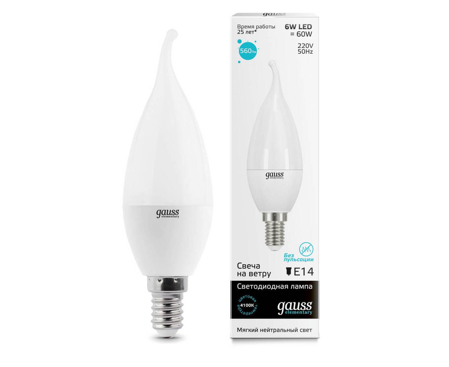 Лампа светодиодная Gauss E14 6W 4100K матовая 34126