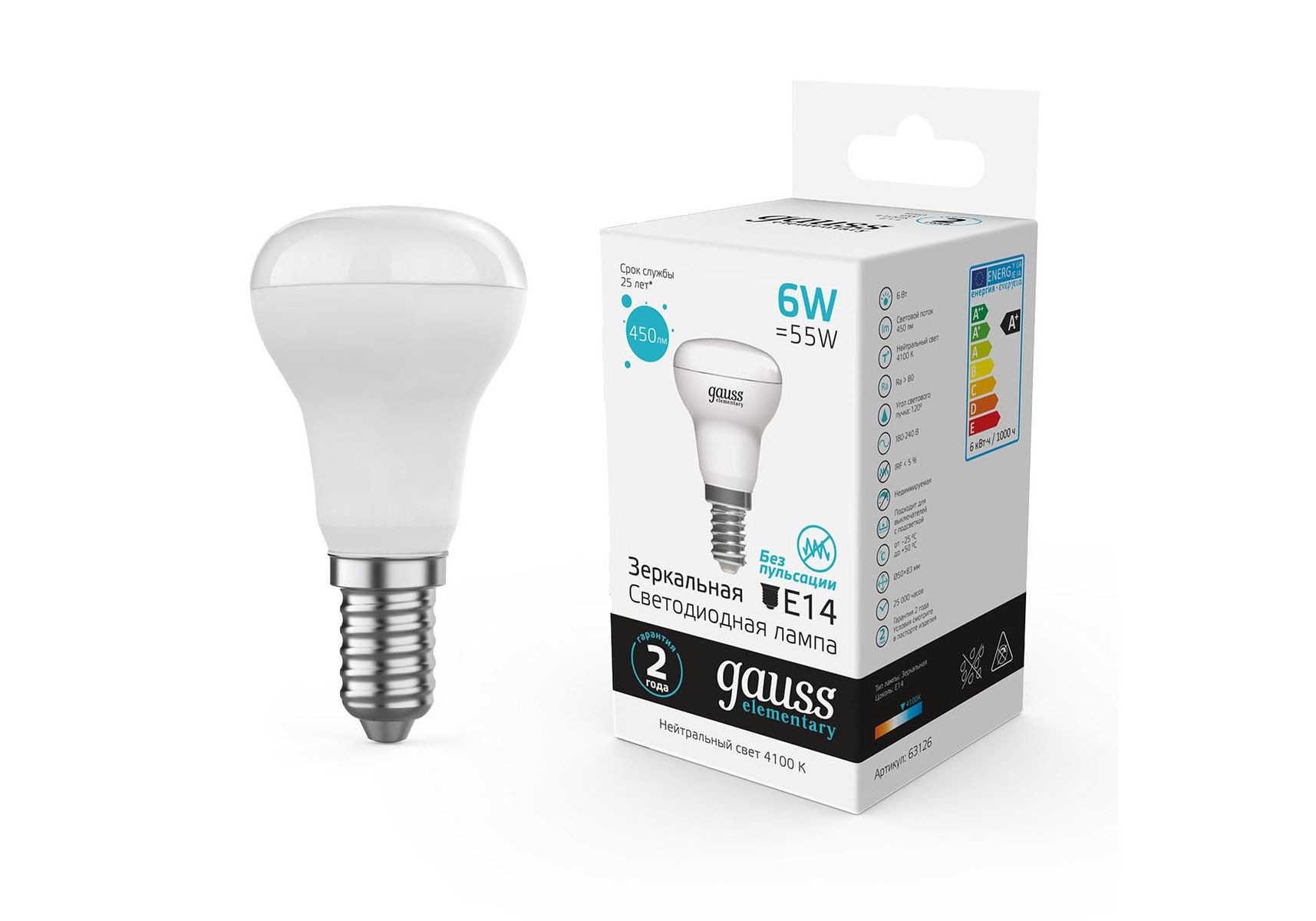 Лампа светодиодная Gauss E14 6W 4100K матовая 63126