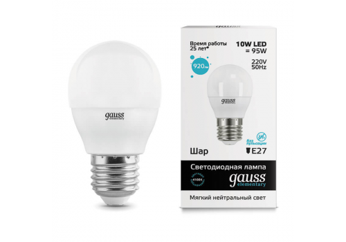 Лампа светодиодная Gauss E27 10W 4100K матовая 53220