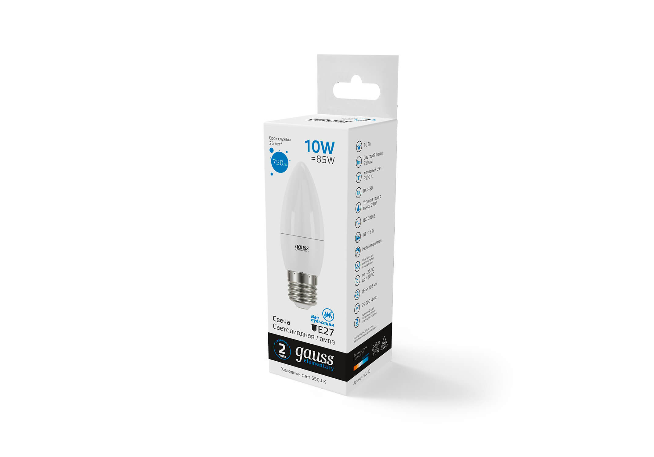 Лампа светодиодная Gauss E27 10W 6500K матовая 30230