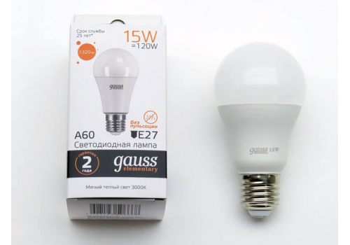 Лампа светодиодная Gauss E27 15W 3000K матовая 23215