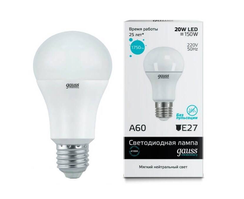 Лампа светодиодная Gauss E27 20W 4100K матовая 23229