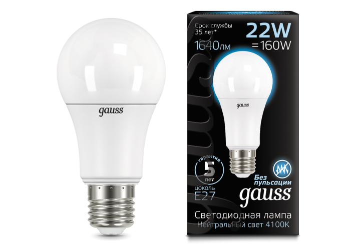 Лампа светодиодная Gauss E27 22W 4100К матовая 102502222
