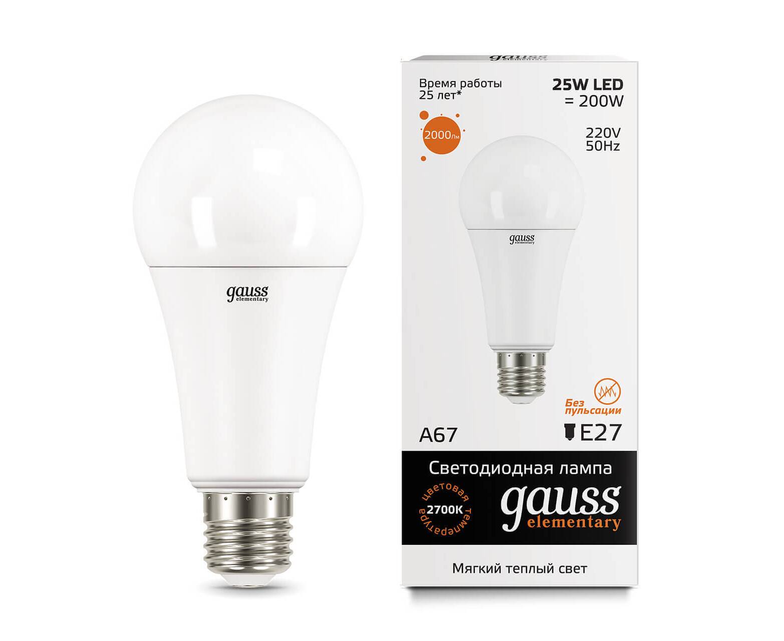 Лампа светодиодная Gauss E27 25W 3000K матовая 73215