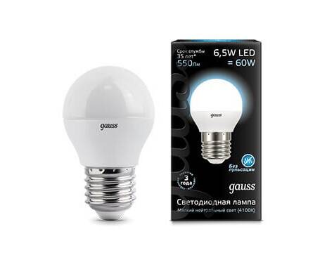 Лампа светодиодная Gauss E27 6.5W 4100K матовая 105102207