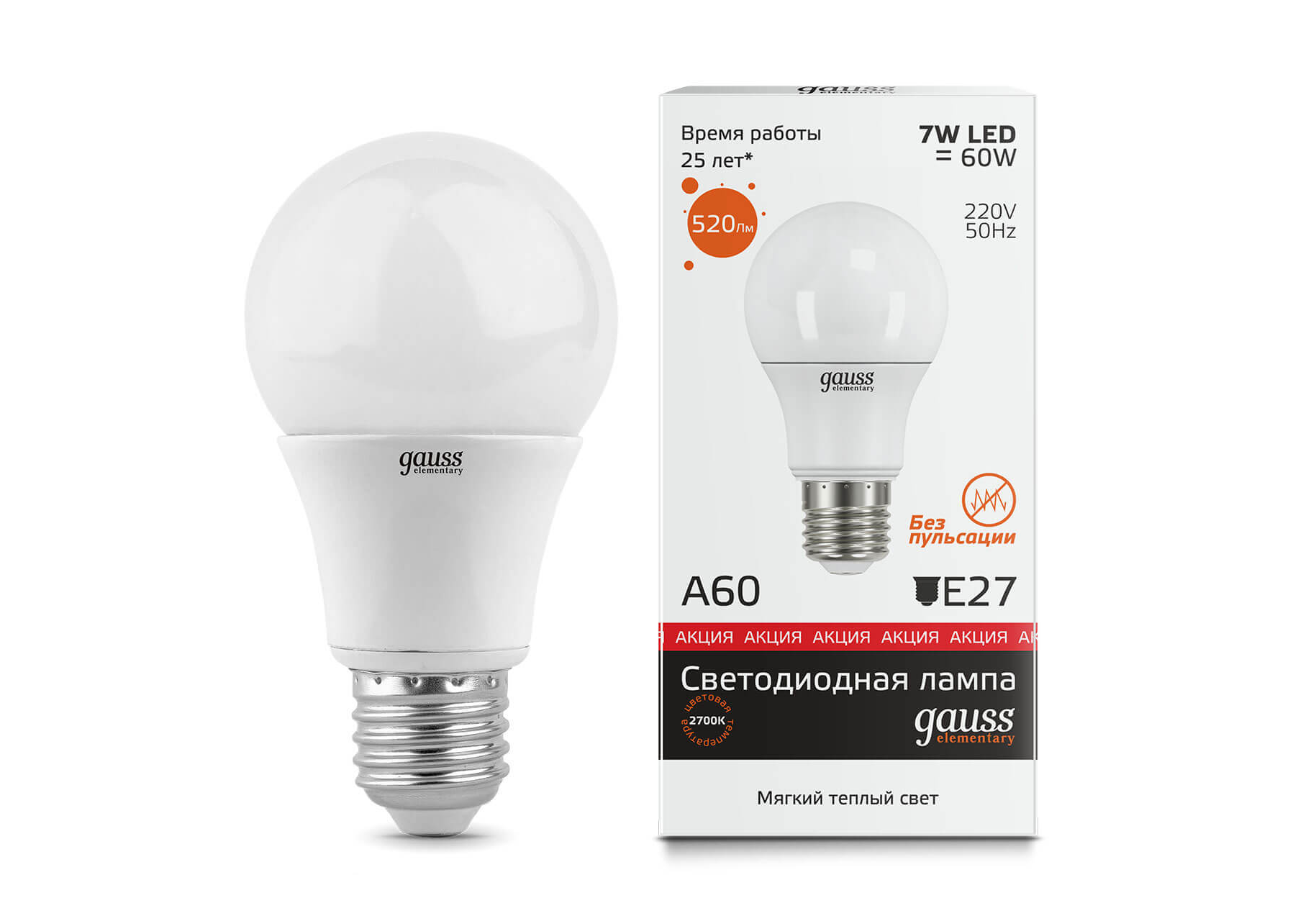 Лампа светодиодная Gauss E27 7W 3000K матовая 23217A