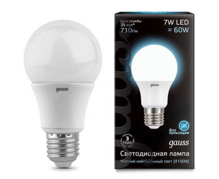 Лампа светодиодная Gauss E27 7W 4100K матовая 102502207