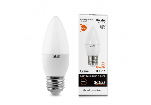 Лампа светодиодная Gauss E27 8W 3000K матовая 33218