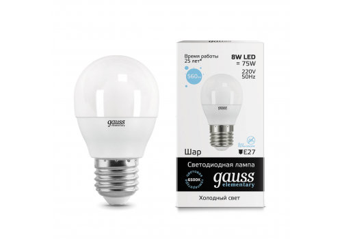 Лампа светодиодная Gauss E27 8W 6500K матовая 53238