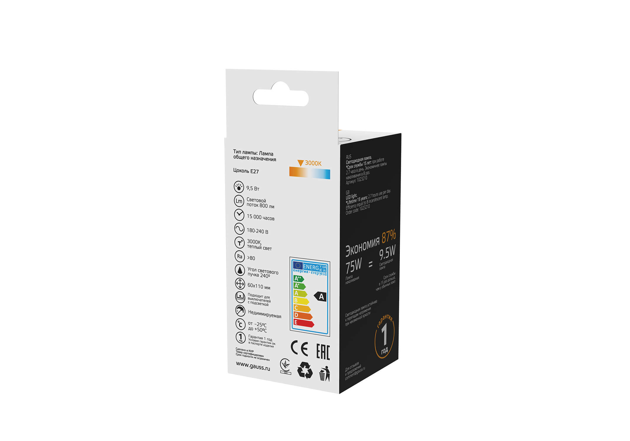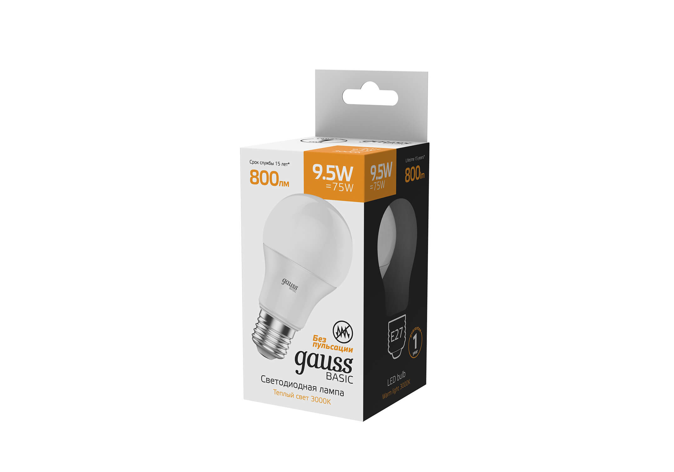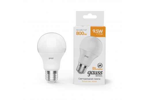 Лампа светодиодная Gauss E27 9,5W 3000К матовая 1023210